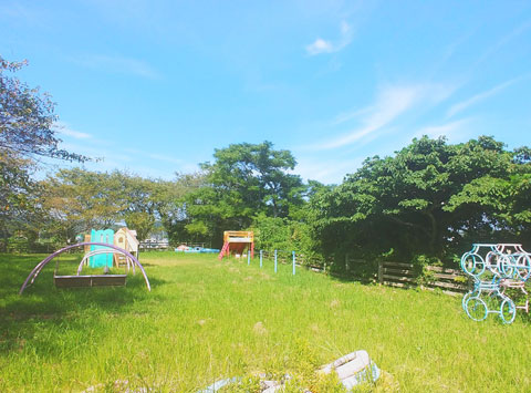 丘の上の広いグラウンドと広い空、そして緑豊かな自然に包まれた当園では、子どもたちがのびのびと過ごせる環境を整えています。